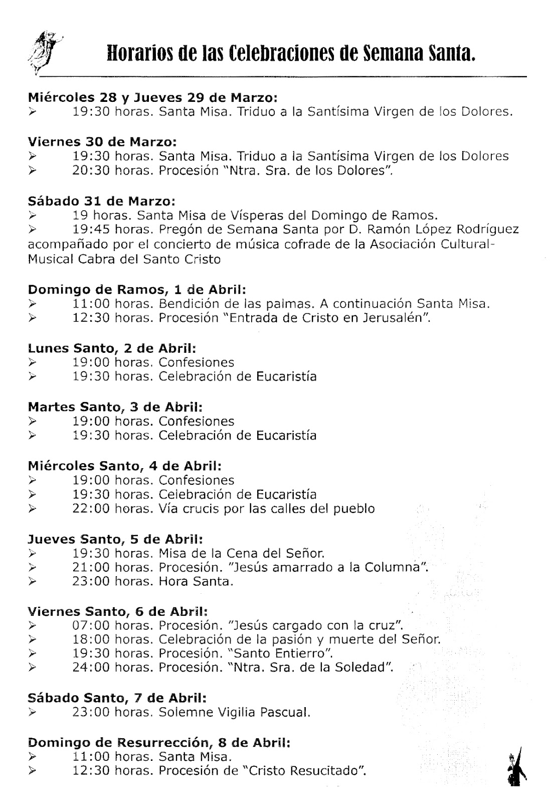HORARIOS DE LAS CELEBRACIONES DE SEMANA SANTA EN CABRA DEL SANTO CRISTO (JAÉN)