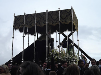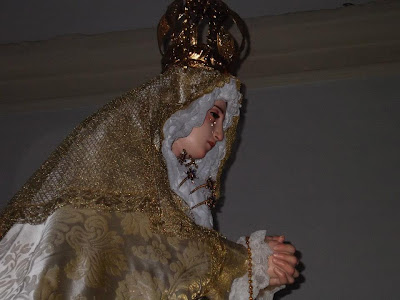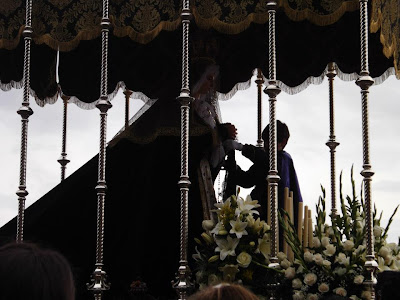 Nuestra Señora de los Dolores y nuestro Hermano Mayor Infantil "Jesús Nazareno" colocando a Nuestra Señora de los Dolores la corona de espinas de Nuestro Padre Jesús Nazareno y pañuelo de luto